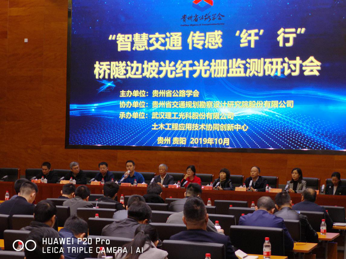 2019年10月25日由貴州省公路學會主辦,貴州省交通規劃勘察設計研究院股份有限公司協辦,武漢理工光科股份有限公司、武漢理工大學貴陽研究中心、土木工程應用技術協同創新中心(道興公司作為核心單位的國家級協同創新中心)承辦的“智慧交通,傳感‘纖’行”橋隧邊坡光纖光柵監測研討會在勘設股份17樓會議室如期舉行。本次研討會邀請武漢理工大學光纖傳感技術國家工程實驗室、武漢理工光科股份有限公司、武漢智慧地鐵有限公司專家就光纖傳感技術在地鐵安全、橋梁、隧道等方面的應用進行講解探討。